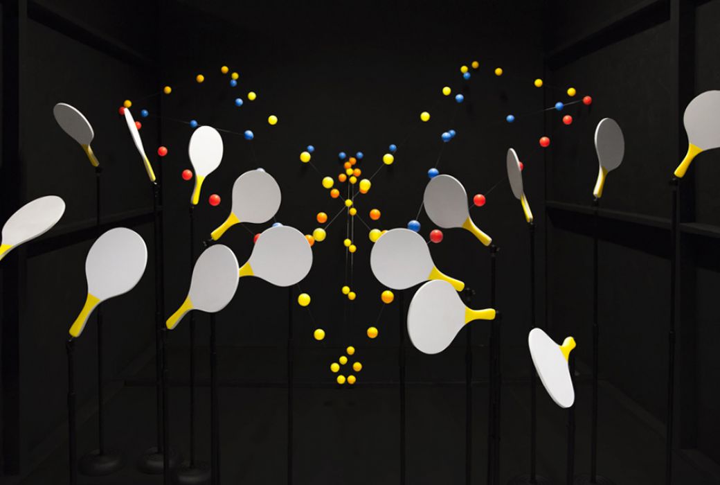 A projection mapping based installation created for Chromatic 2015 at La cite Mode et Design in Paris. Using his "trajectories" technique that consists of freezing a series of actions in time physically before animating each object sequentially through projection mapping, opposing players dialogue through a series of racket exchanges that intensifies to the point of no return. Greg Barth is an award winning artist and director from Geneva, Switzerland, currently based in London.