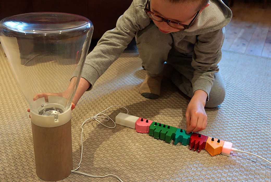 Le fonctionenemnet de l'instrument est simple : les utilisateurs connectent entre eux des petits composants de style Lego, pour créer des sons. Les sons font ensuite vibrer le haut-parleur, faisant à son tour vibrer de petites billes qui résonnent dans un dome en verre et créent une expérience musicale visuelle. L'habillage du haut parleur est fait en contre-plaqué, ce qui permet aux vibrations de se répandre au travers de celui-ci : lorsque l'enfant place ses mains dessus, il sent la musique.